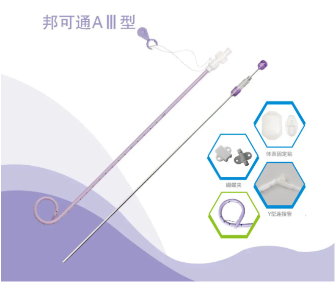 临床要求引流管越粗越好,笔者一般根据穿刺时抽出液体的颜色及浓稠度选择引流管。液体清亮一般选择8.5F引流管或中心静脉管,液体浓稠时选用10.2F或14F。在引流管后方接上三通管,可使抽取液体、注入化疗药物更方便。