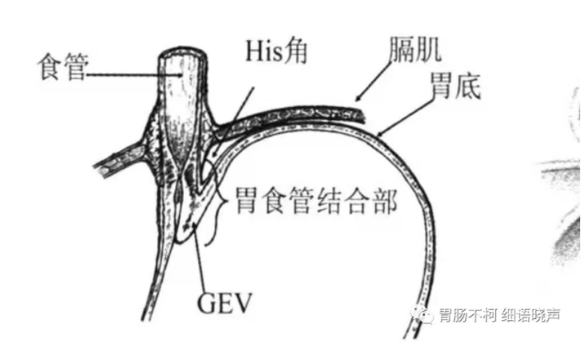 局部解剖特点:食管下端括约肌(lower esophageal sphincter ,LES)包括食管下端纵形肌和环形肌(内括约肌部分)、膈肌的肋部和脚部(外括约肌部分)及内外括约肌之间的膈食管韧带,通过膈食管韧带的传导,外括约肌的收缩和松弛协同食管下端括约肌,起着括约食管裂孔、防止腹腔其它脏器进入胸腔、防止胃内容物反流进入食管的作用。食管下端抗反流机制,除了LES的作用,还有HIS角与胃食管阀瓣瓣膜(gastroesophageal valve ,GEV)的作用。HIS角是食管腹段斜向与胃连接、使食管下端和胃底形成的锐角,又称贲门切迹或食管-胃角。GEV是贲门周围长约4-5cm的黏膜皱襞,胃内压力增加时,此皱襞有一定关闭贲门的作用,是抵抗胃内容物进入食管的黏膜屏障之一。