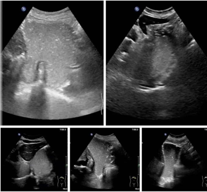 下图是不同表现的滑动型食管裂孔疝:宽窄不一的食管裂孔管径、大小不一的疝囊、或正常或变钝的HIS角,部分病例可见疝囊壁与胃壁回声及厚度一致的延续: