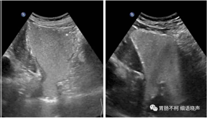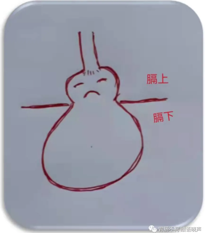 滑动型:EGJ上移,膈肌裂孔内径正常或增宽(正常解剖内经1.8-2.5cm),膈上疝囊及膈下胃呈“葫芦状”,“烧瓶状”,吸气、增加腹压、右侧卧位或二次充盈时疝囊及膈肌裂孔增大,造影剂在裂孔上下往返,膈上疝囊壁厚度及回声与胃壁一致相延续。