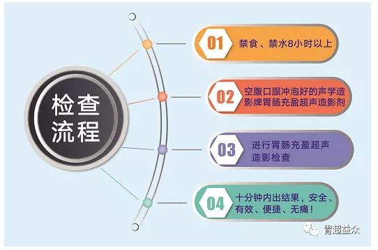 与其他检查手段相比,胃肠充盈超声造影检查具有无痛、无创、无辐射、安全性高的特点,操作简便,可重复性好,患者耐受好。