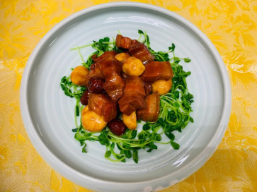 特点:色泽红润、油而不腻、香浓可口,肉与栗子脂肪酸、维生素等营养素互补,是非常和谐的食材搭配。