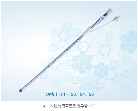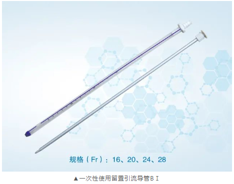 (1) 一次性无菌留置引流管是采用第二代聚脲胺酯材质, 具有良好的组织相容性, 在体外时较硬, 便于置入, 在体内变软, 减少对组织器官的刺激。