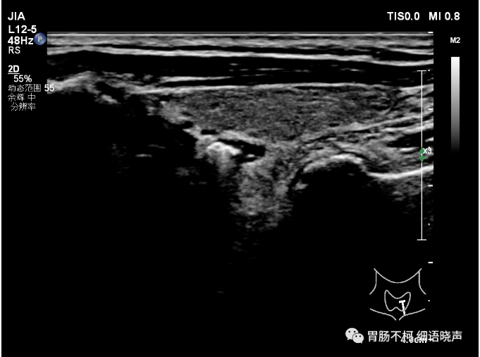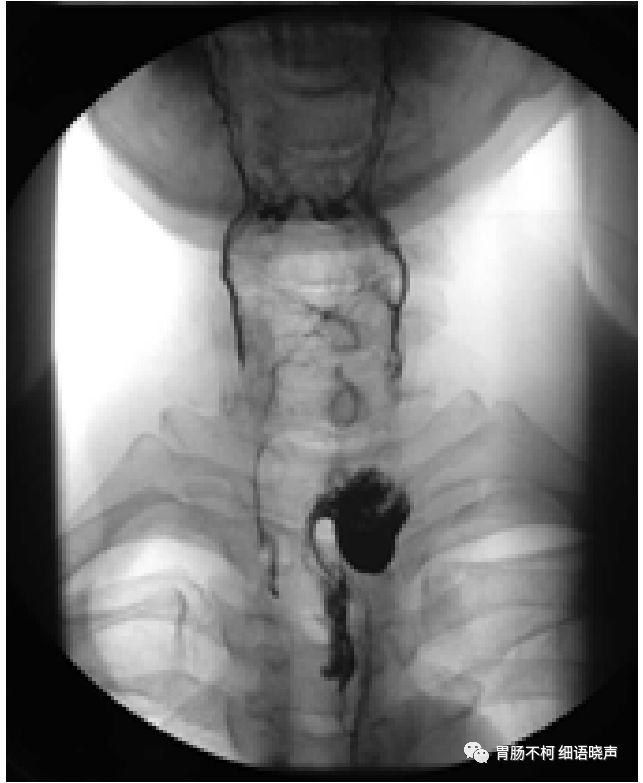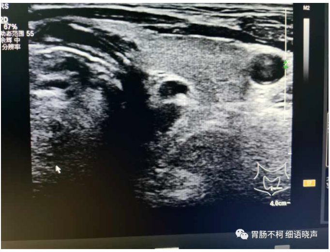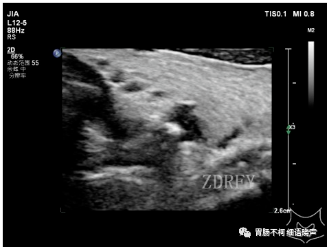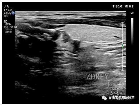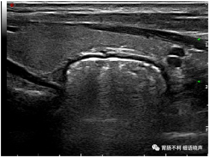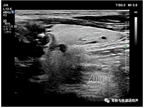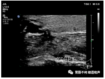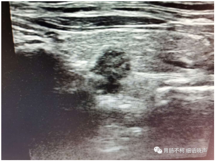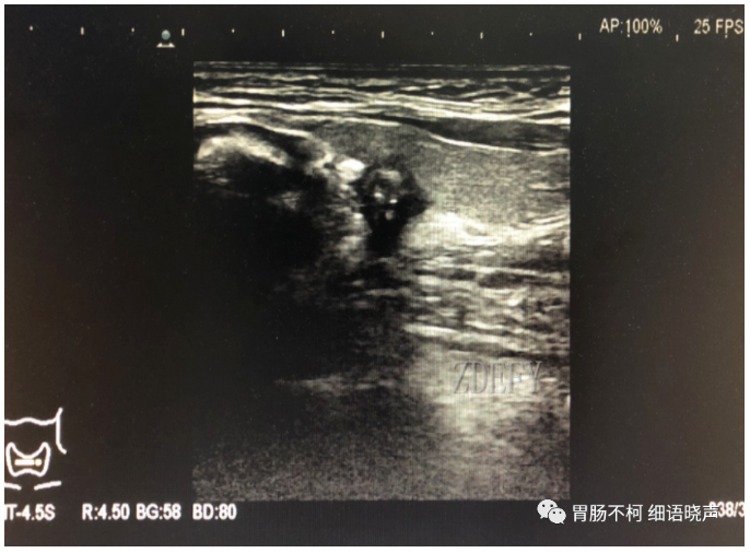 隔日复查,结节的内部回声发生了变化,呈典型混合回声型咽食管Killian-Jamieson憩室的表现。