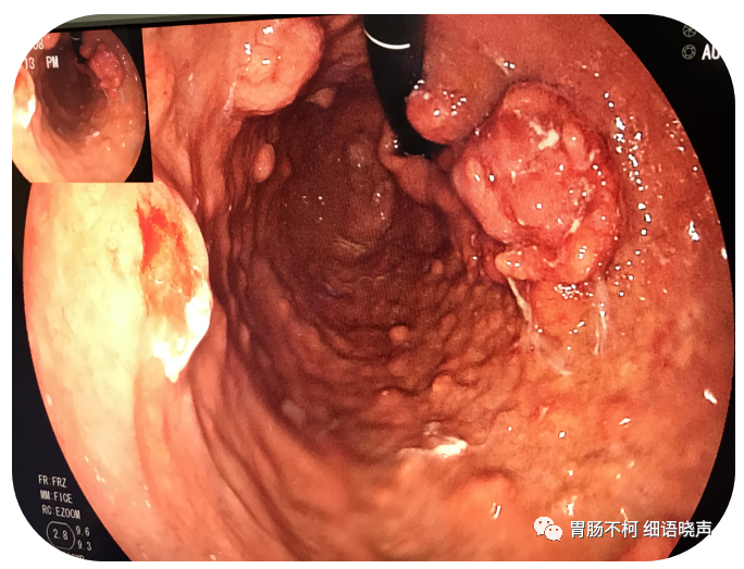 关于鉴别诊断,大家可思考一下:发生于粘膜腺体层或固有层(肿块黏膜面只有一层强回声线)的肿瘤还有哪些?根据其他什么特点鉴别?